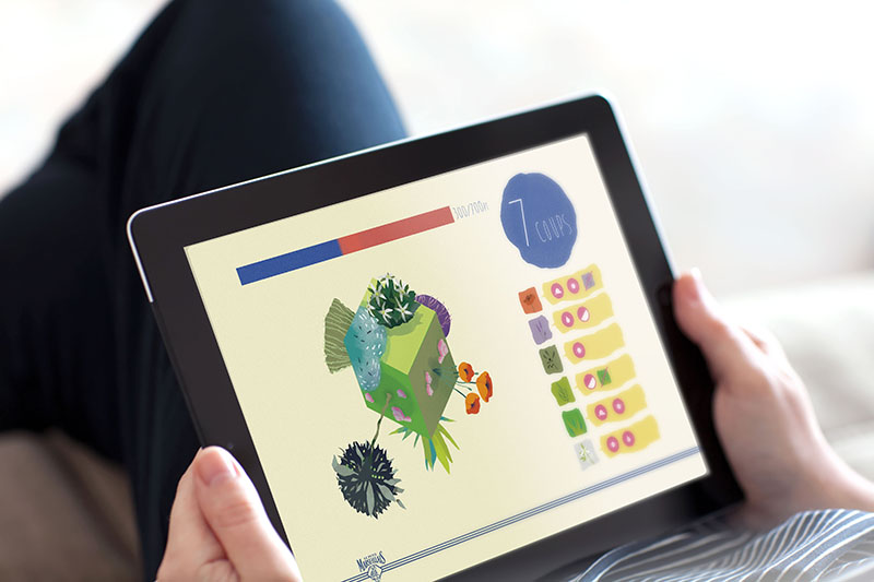 Concept de serious gamme. Un casse-tête qui prend place dans un espace cubique en 3 dimensions, un jardin marseillais abstrait. Y faire pousser des plantes vernaculaires du sud-ouest de la France.