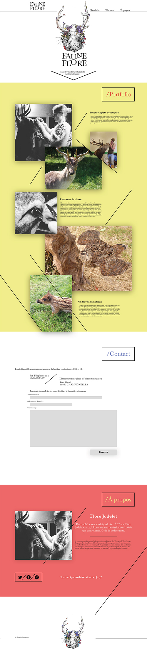 Identité graphique pour la taxidermiste Flore Jodelet. Rendre compte de son travaille d'exception. Un artisanat qui fige la nature, et qui par bien des aspects évoque notre rapport au vivant.